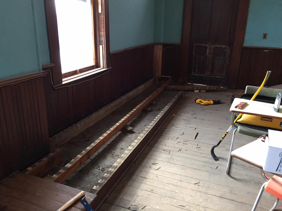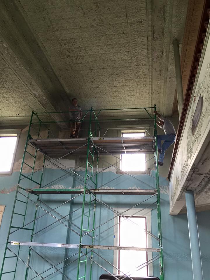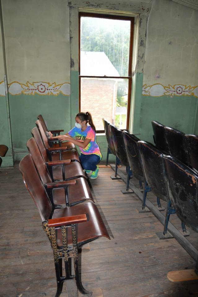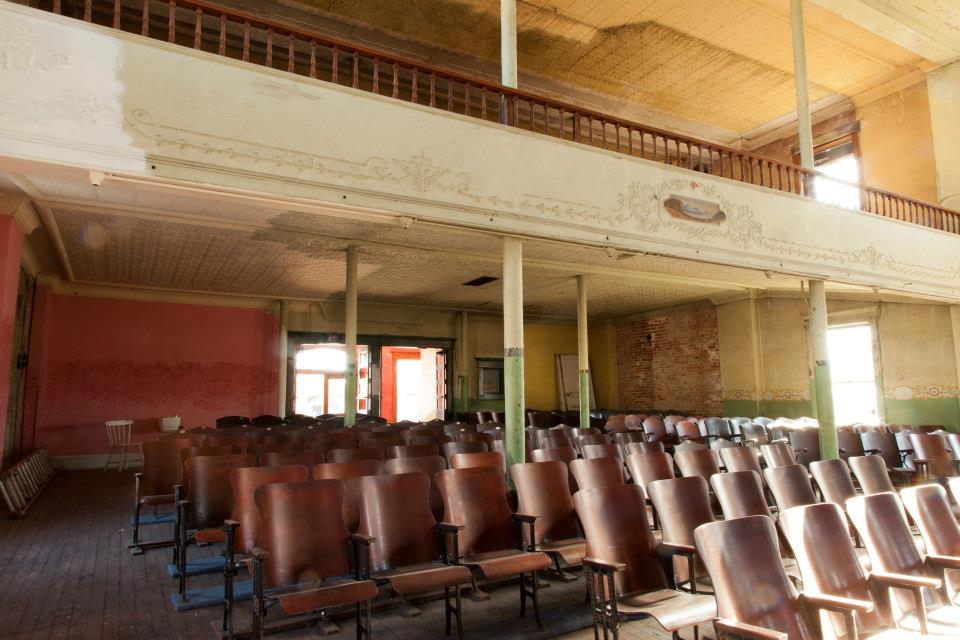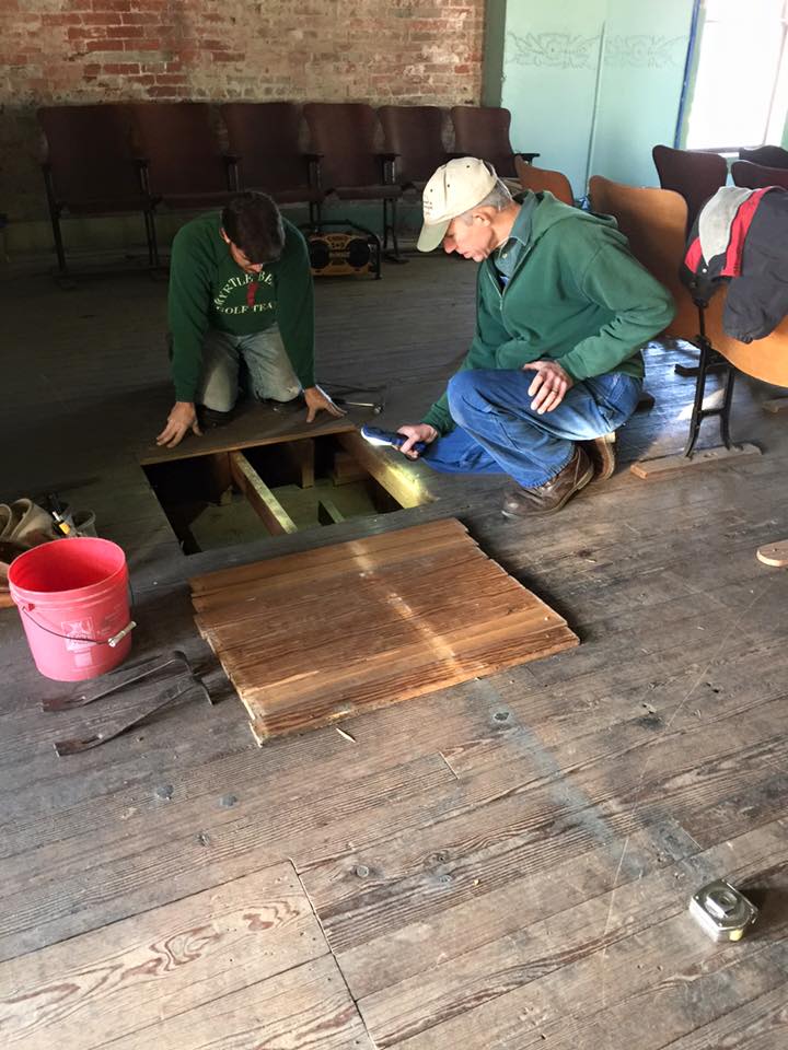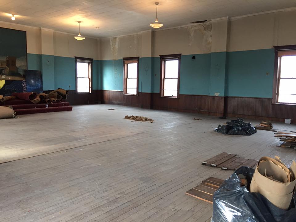 The BDRC conducted several types of events in the VOH over the years, but the building was (except for the Village Offices in the rear walk out lower level) without utilities or much else. Since the theater ceased functioning as a movie house in the early 1960s the auditorium was used to store junk. The Masonic Temple abandoned the ballroom on the upper floor in the 1980s.